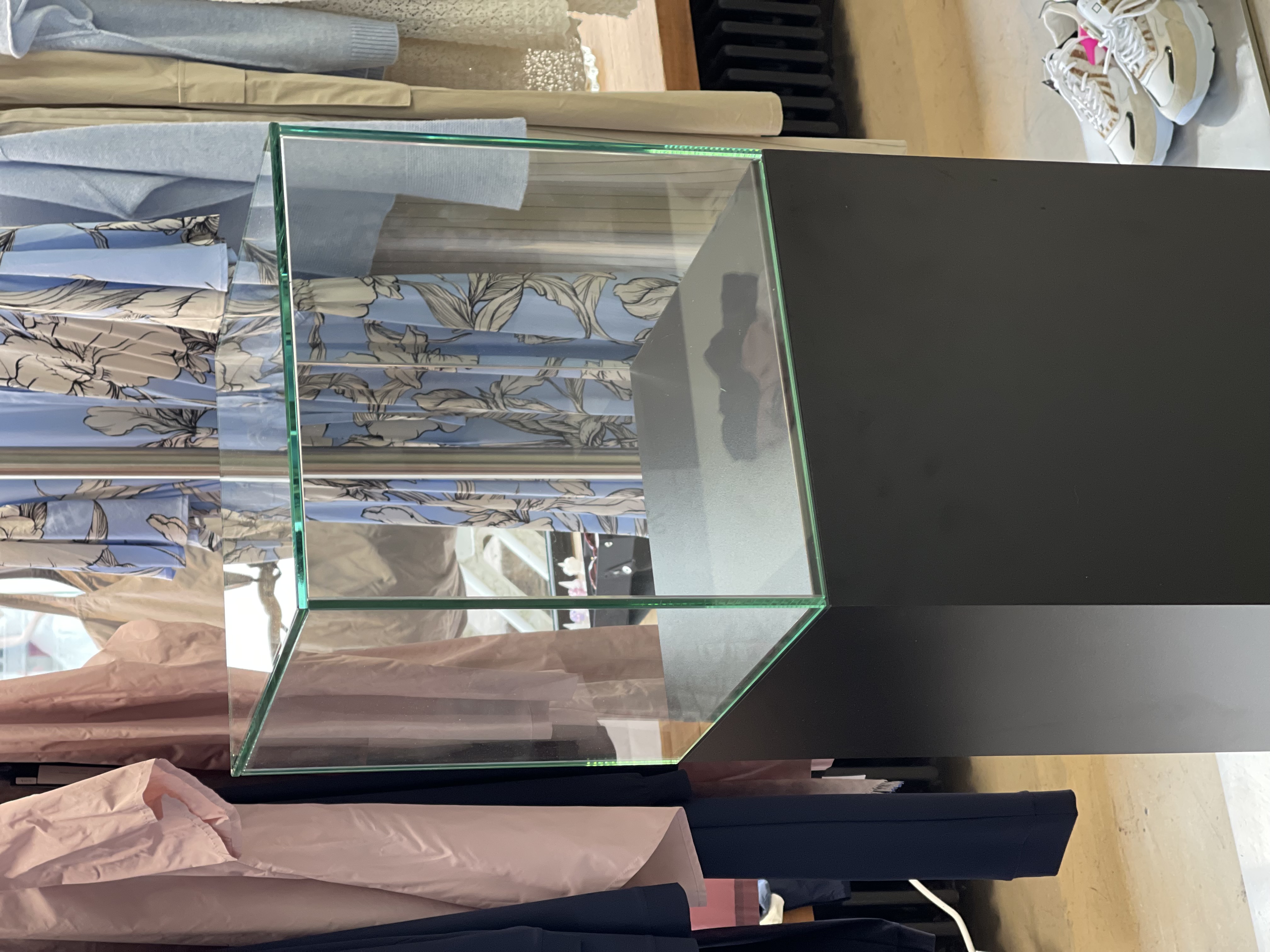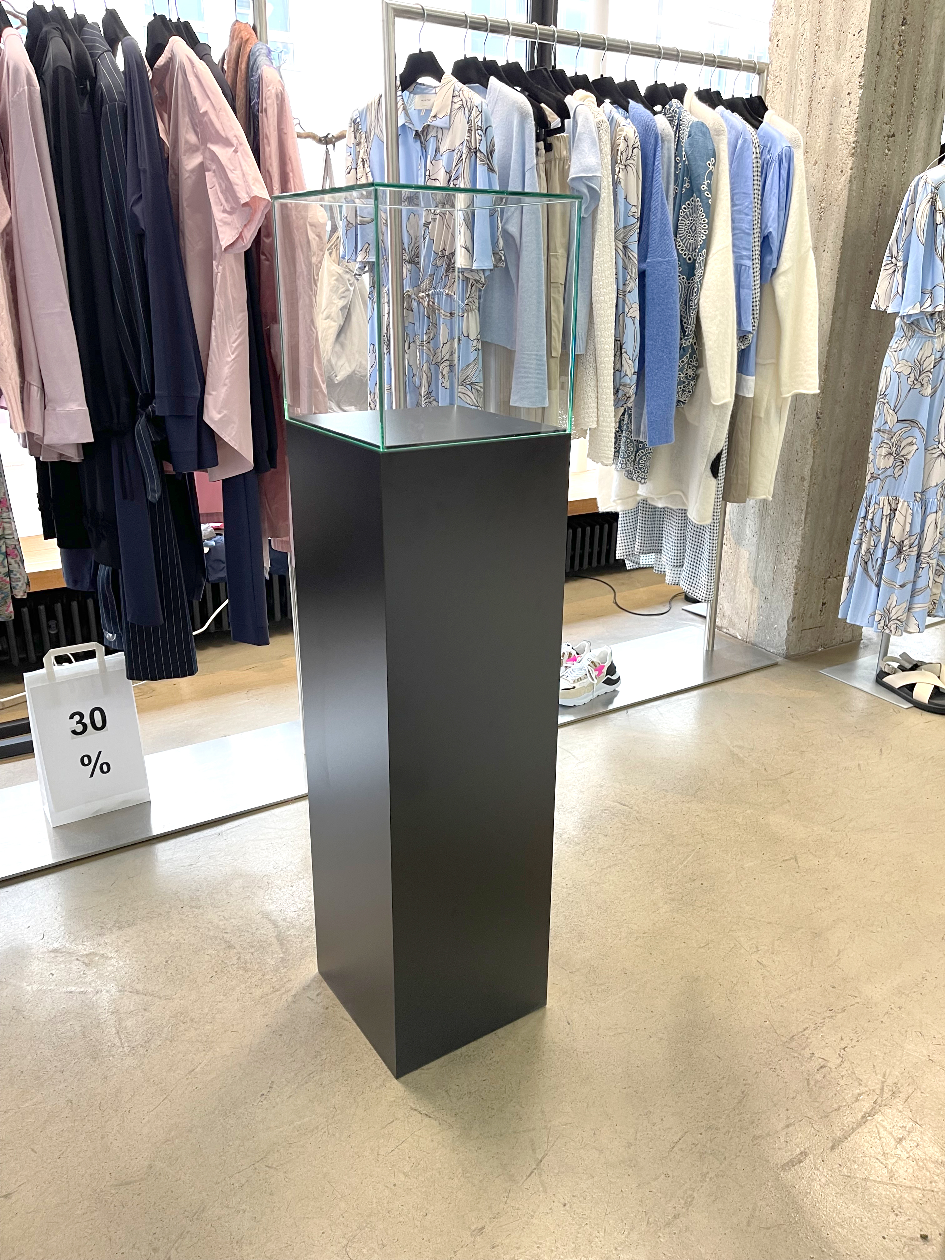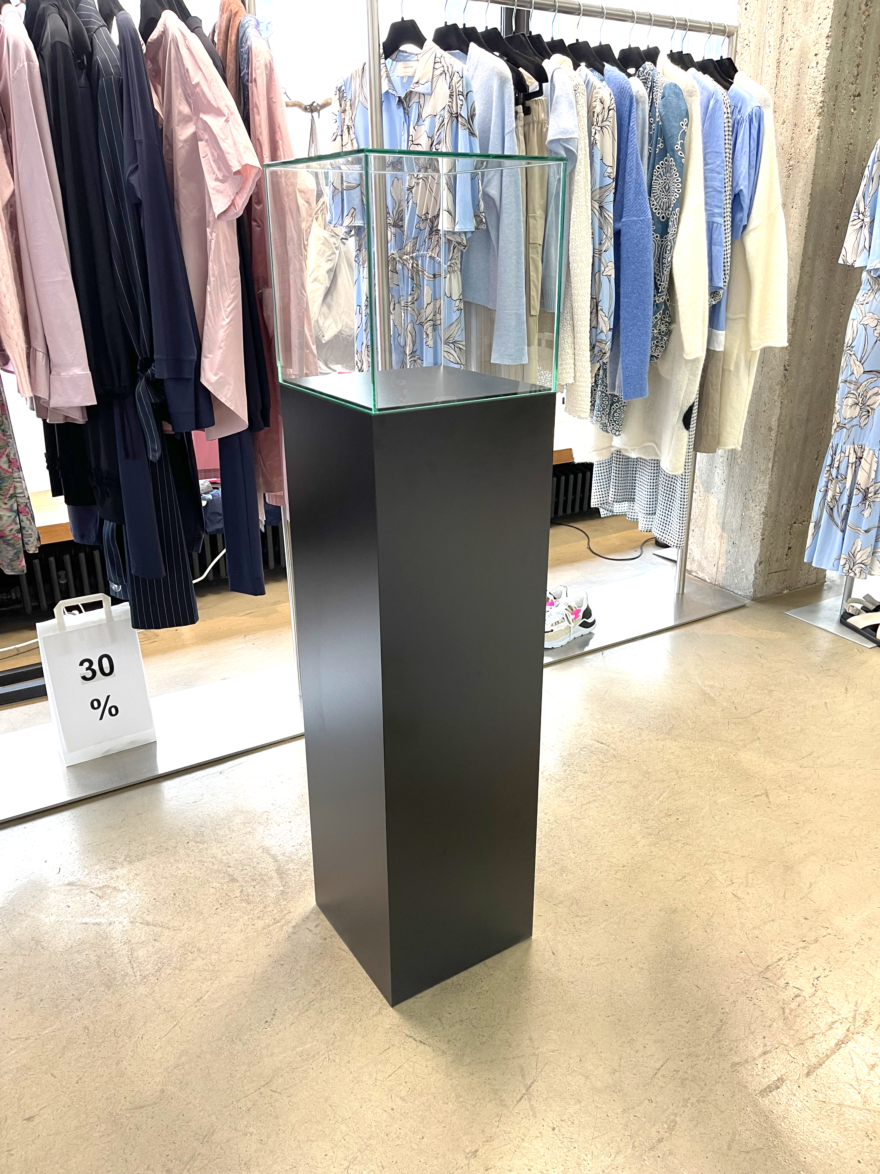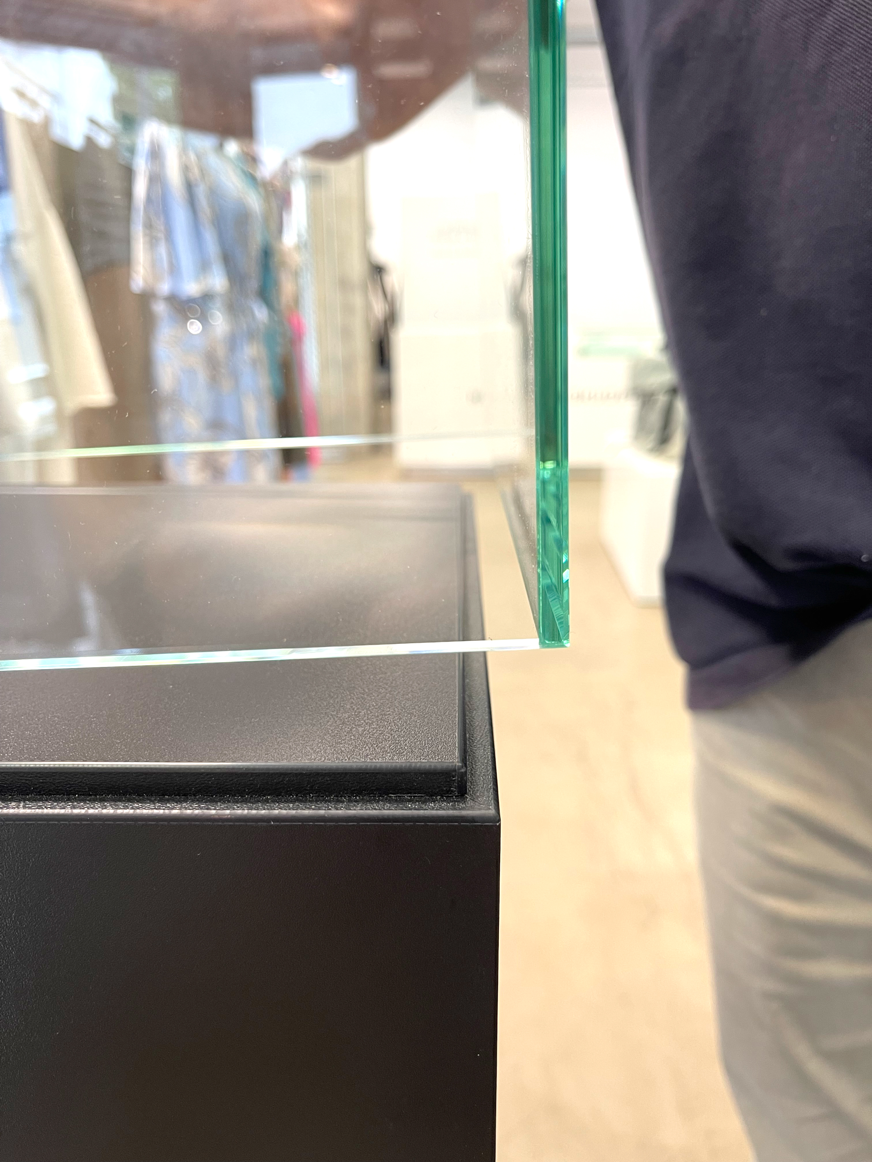 - 5-seitig verglaste Vitrine mit polierten Glaskanten, stumpf UV-verklebt